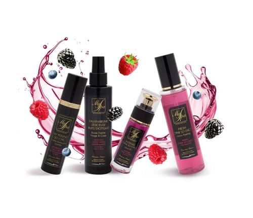 Soin detox aux notes gourmandes à base de fraises et de myrtilles pour une peau détoxifiée et eclantante.